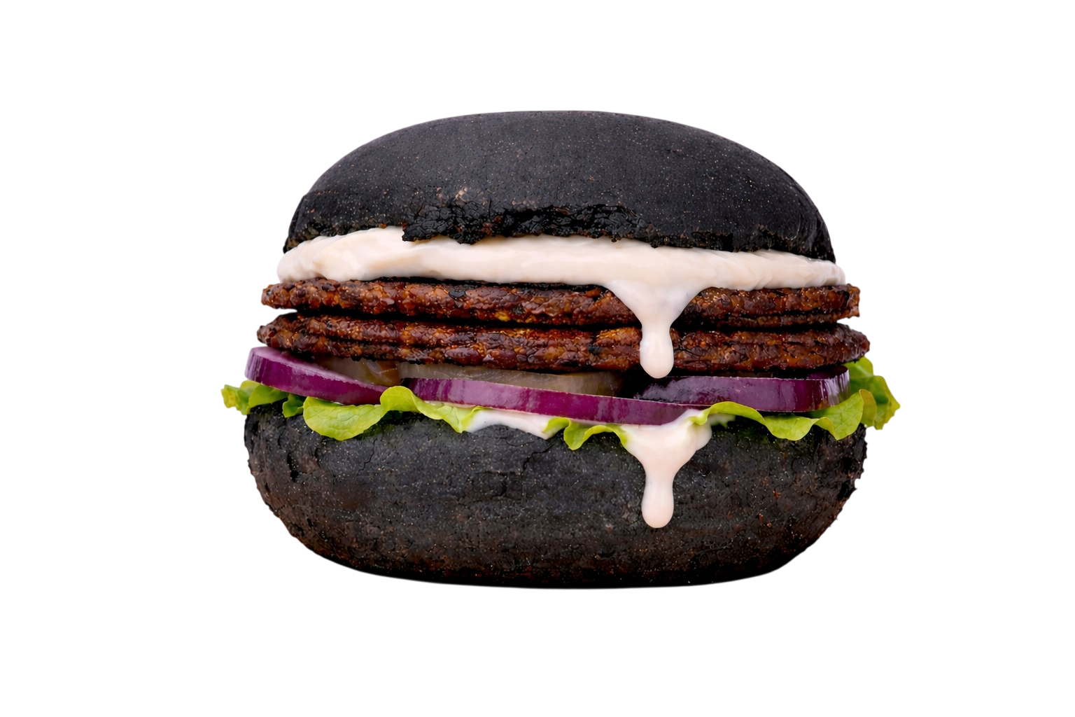 Эксклюзивный бургер с фирменной черной булочкой, сочной котлетой из мраморной говядины Блэк Ангус, грибами, деликатесным сыром фета и сыром чеддер, свежими помидорами, листьями салата, кольцами красного лука и маринованными огурчиками. Особый вкус и сочность бургеру придает карамелизированная груша в сочетании с джемом из черной смородины. Заправляется фирменным соусом с трюфельным маслом.