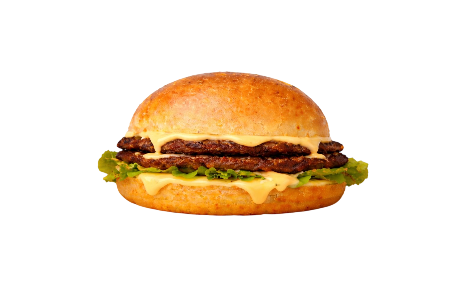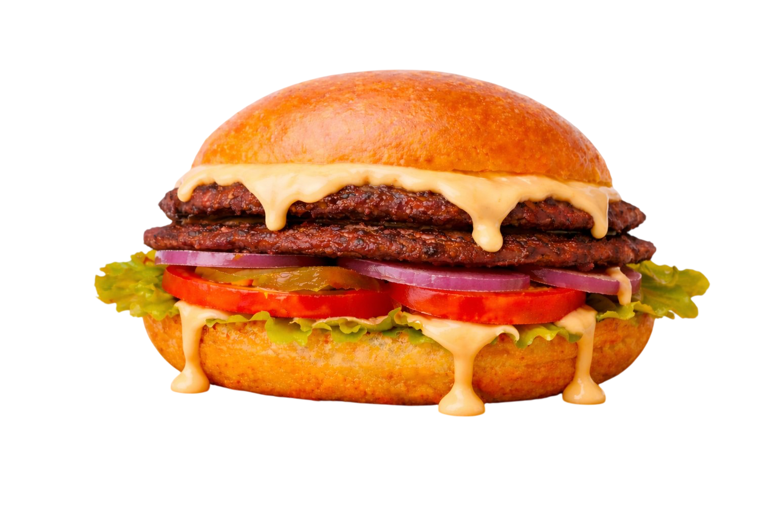 2 сочных смэш котлеты, соус 1000 островов, лук жаренный, огурцы маринованные, тянущийся сыр чеддер, соус барбекю